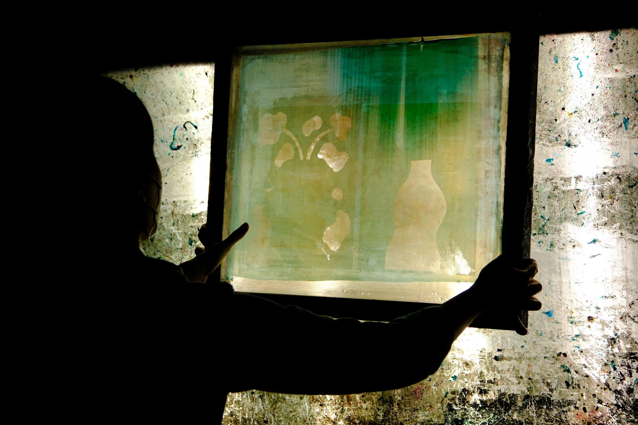 “Every step, from preparing the screen, exposing the art, washing it with water, mixing colors, and pulling prints, is tactile, hands-on, and imperfect. I found joy in mixing colors and watching them change, like the seasons shifting from spring to fall.”