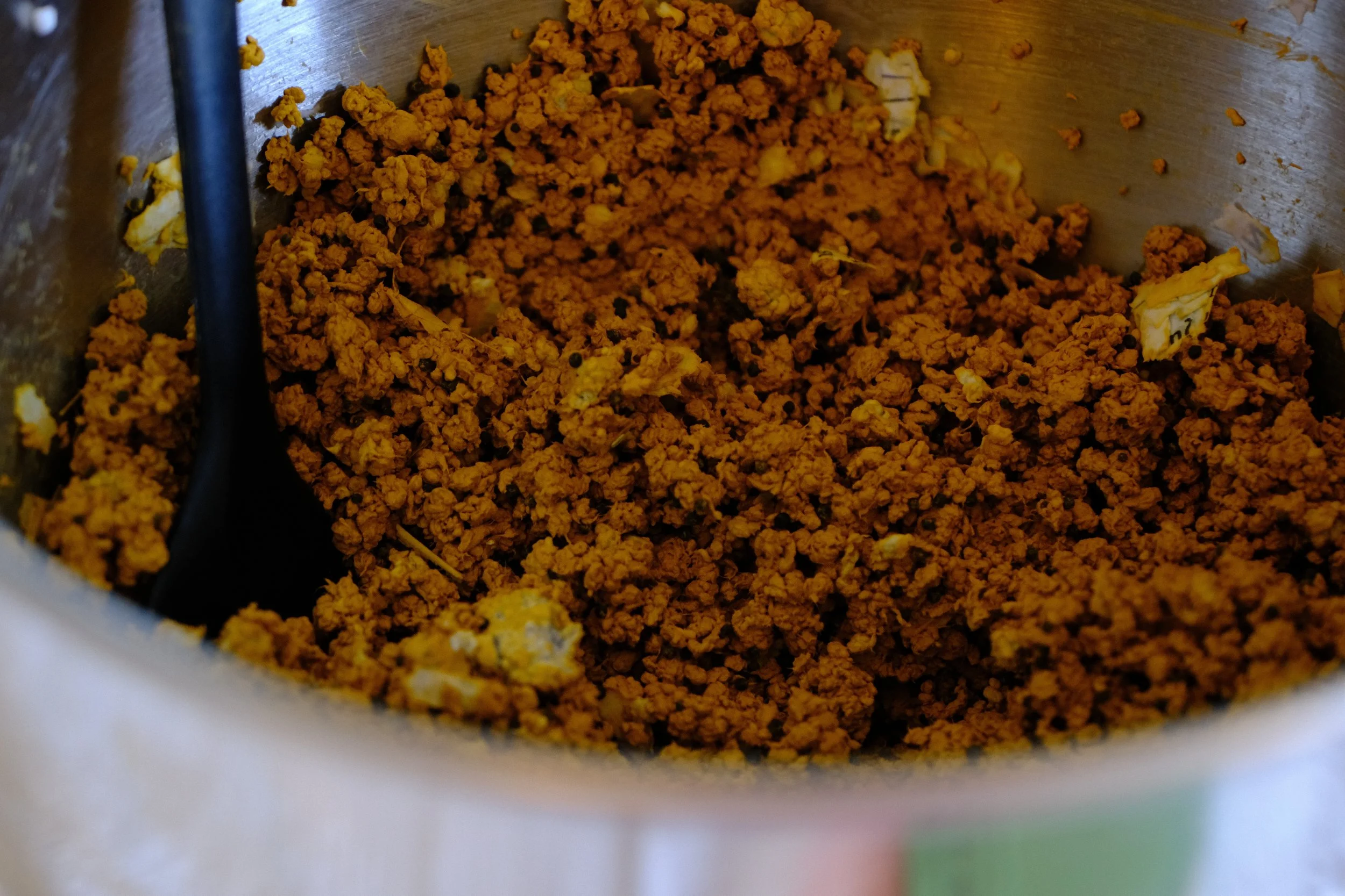 Slowly mix in water with your hands until everything sticks together.