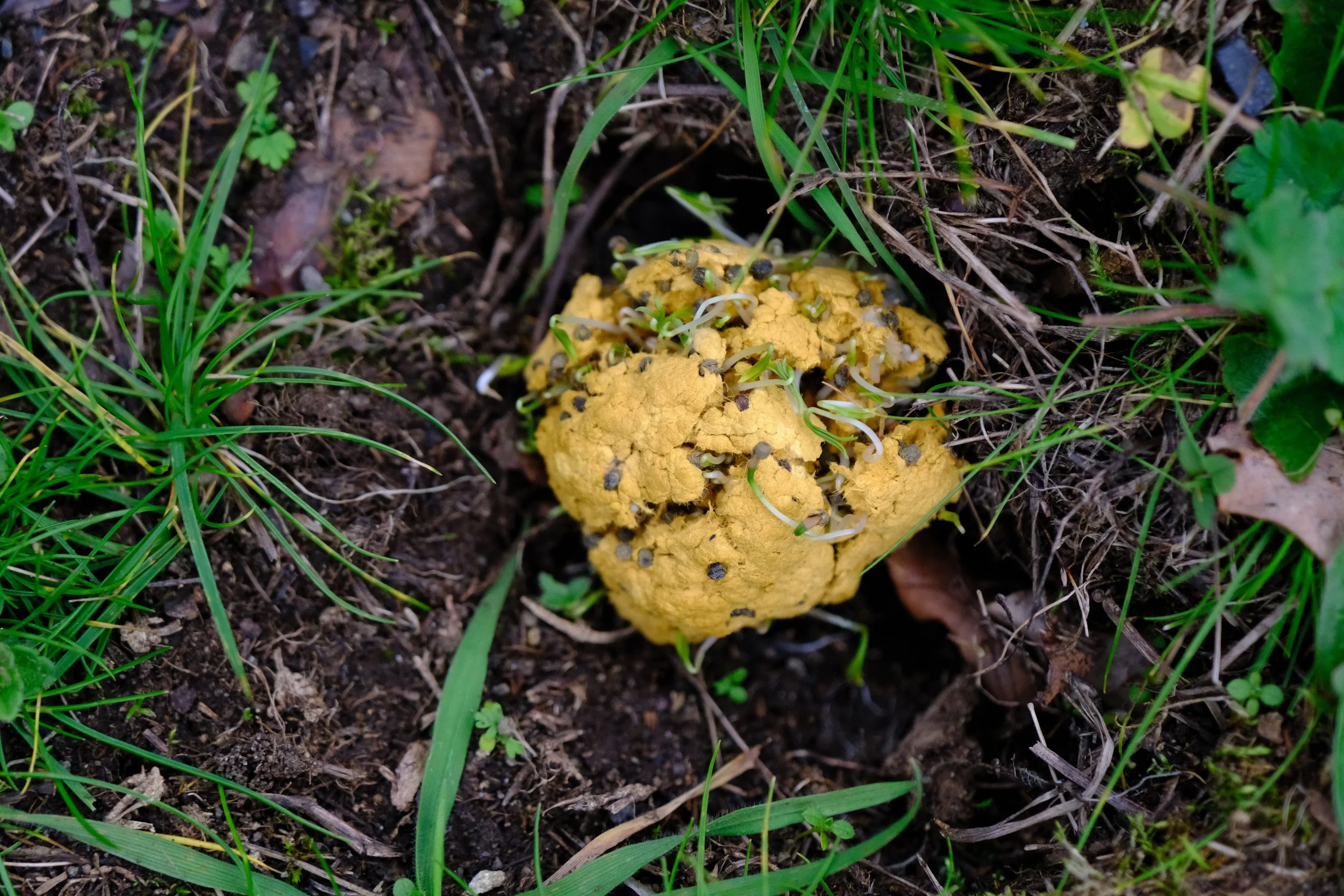 In a bowl, mix together 1 cup of seeds with 5 cups of compost and 2-3 cups of clay powder (you could use clay soil instead if you have it).